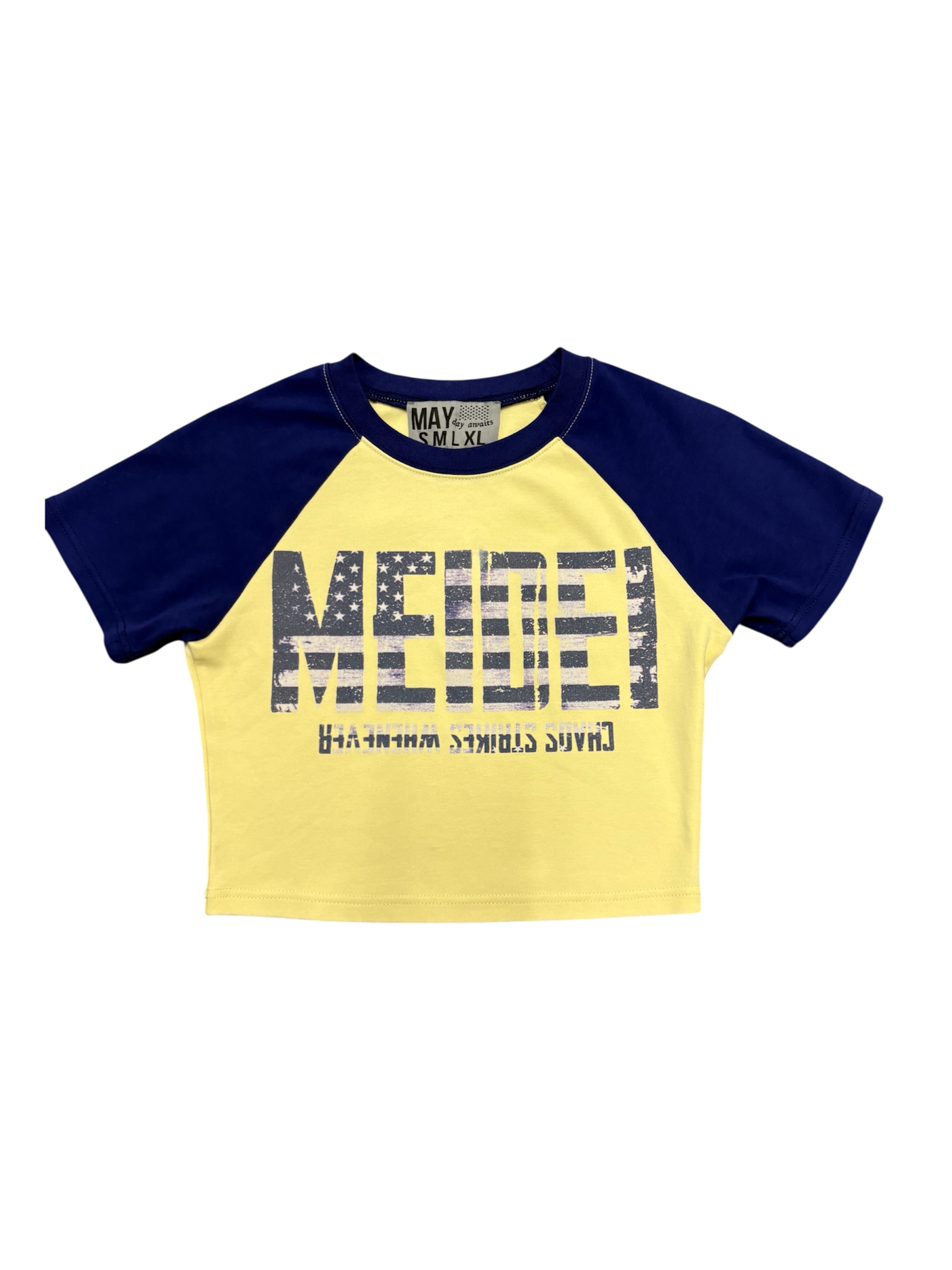 Pastel Yellow & Navy Blue Star spangled MEIDEI Crop Top